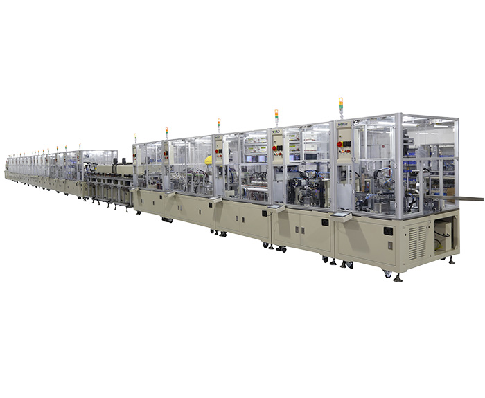 2.集成了弹片绞合、定位组装、铁芯绞合、落差检测、调整、点胶、烘烤、热铆、测试、除尘、入壳、端子焊锡、半成品测试、真空检漏、成品测试、激光打标等组装工序;